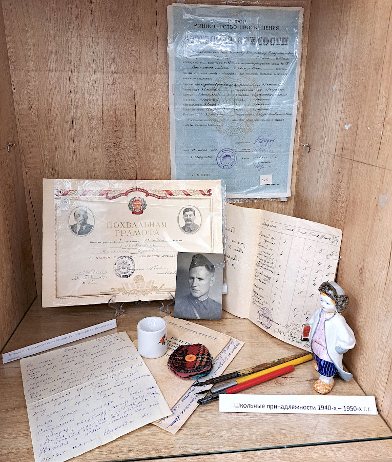 На выставке представлены бытовые и школьные вещи. Школа тогда была настоящим центром Мира. Задачей каждого было остаться человеком перед лицом надвигающегося обесчеловечивания. Учителя как представители мирной и самой гуманной профессии – воплощали эту задачу в жизнь.