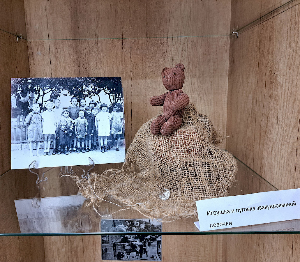 Здесь же можно увидеть маленького игрушечного медвежонка и пуговку. Их хозяйка – девочка из блокадного Ленинграда, эвакуированная в Свердловск. Зачастую именно так выглядело всё имущество переселенцев.