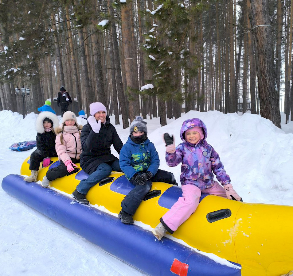 Мероприятие организовали собственными силами - не потребовались ни аниматоры, ни специально приглашённые организаторы. Дружная детско-родительская компания справилась самостоятельно. Быстро пожарили шашлыки, организовали катание на бубликах с горы и на банане по лесу, провели конкурсы, поиграли с хаски.