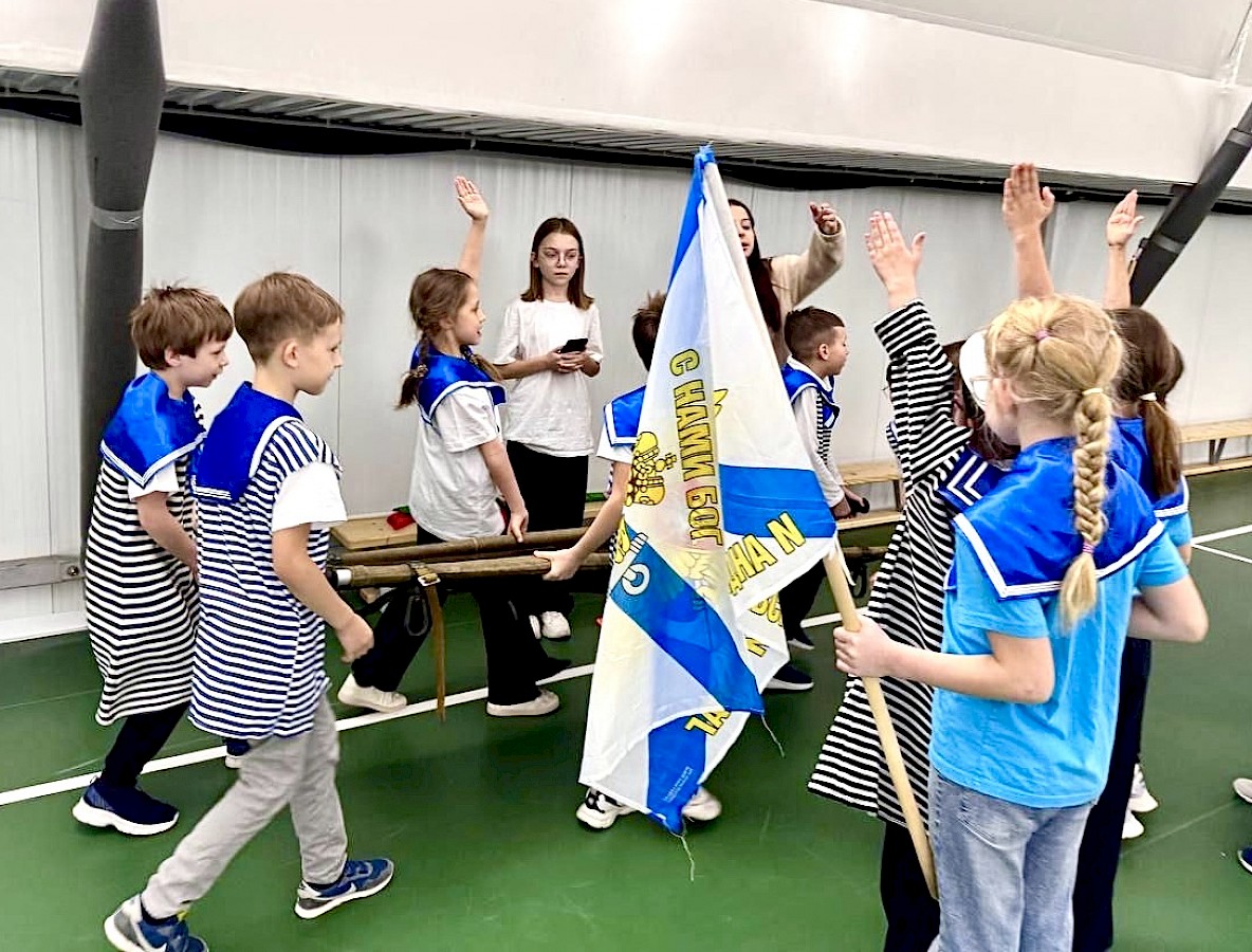 Ребяиа собрались в большом спортивном зале, чтобы бодрой игровой эстафетой встретить День защитника Отечества.