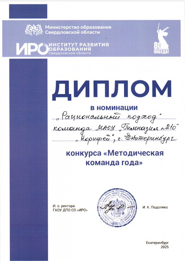 Команда педагогов гимназии № 210 «Корифей» в среду, 26 ноября, приняла участие в областном конкурсе «Методическая команда года», который проводился Институтом развития образования Свердловской области.