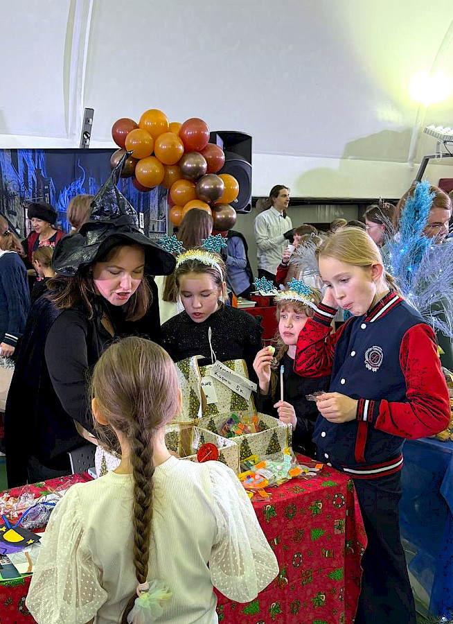 Это популярное предновогоднее событие, к которому дети и взрослые с энтузиазмом готовятся с середины ноября. Каждый класс делает рукодельные сувениры - свечки, ёлочные игрушки, пряники, украшения и многое другое - по своему «техническому заданию».