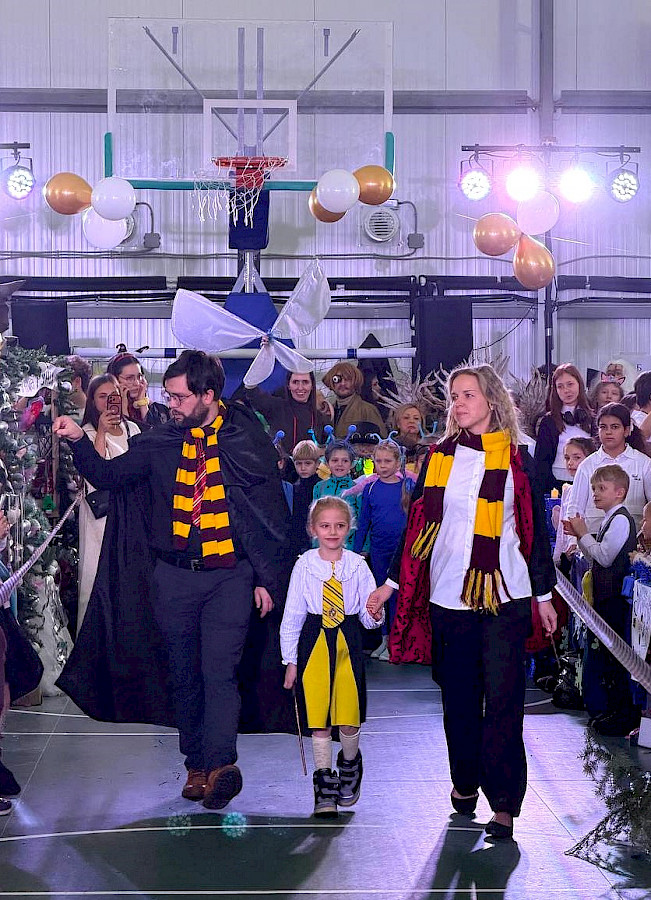 Началась ярмарка с большого дефиле магических существ. Кто только не прошёл по центральному коридору: пикси, феи и тролли, чародеи и маглы; василиски и динозавры; даже тот, кого нельзя называть, появился здесь со своей свитой - дементорами. И особенно круто, что вместе с детьми шли (играли, пели, танцевали) педагоги и родители.