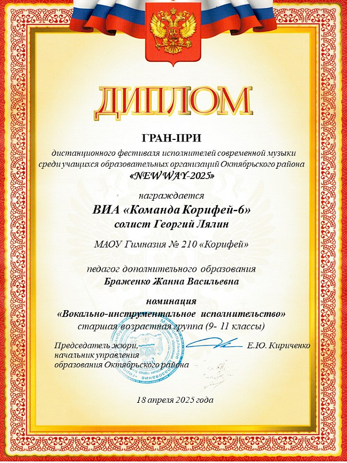 Поздравляем Георгия Лялина, Петра Григорюка, Матвея Переладова, Макара Сомова, Валерию Лялину, Александра Ваниева, Ирину Гарифуллину и их руководителя - великолепную, зажигательную и зажигающую Жанну Васильевну Браженко с высокими творческими результатами!