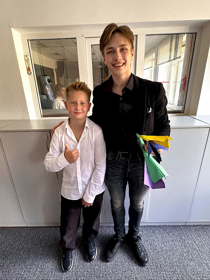 Дело не ограничилось просто угощениями. Сначала весь класс отвечал на вопросы веселой викторины. Потом именинники вытаскивали предсказания: каким для них будет этот учебный год. Кому-то были напророчены отличные отметки, кому-то - увлекательные путешествия, а кто-то станет еще более целеустремленным.