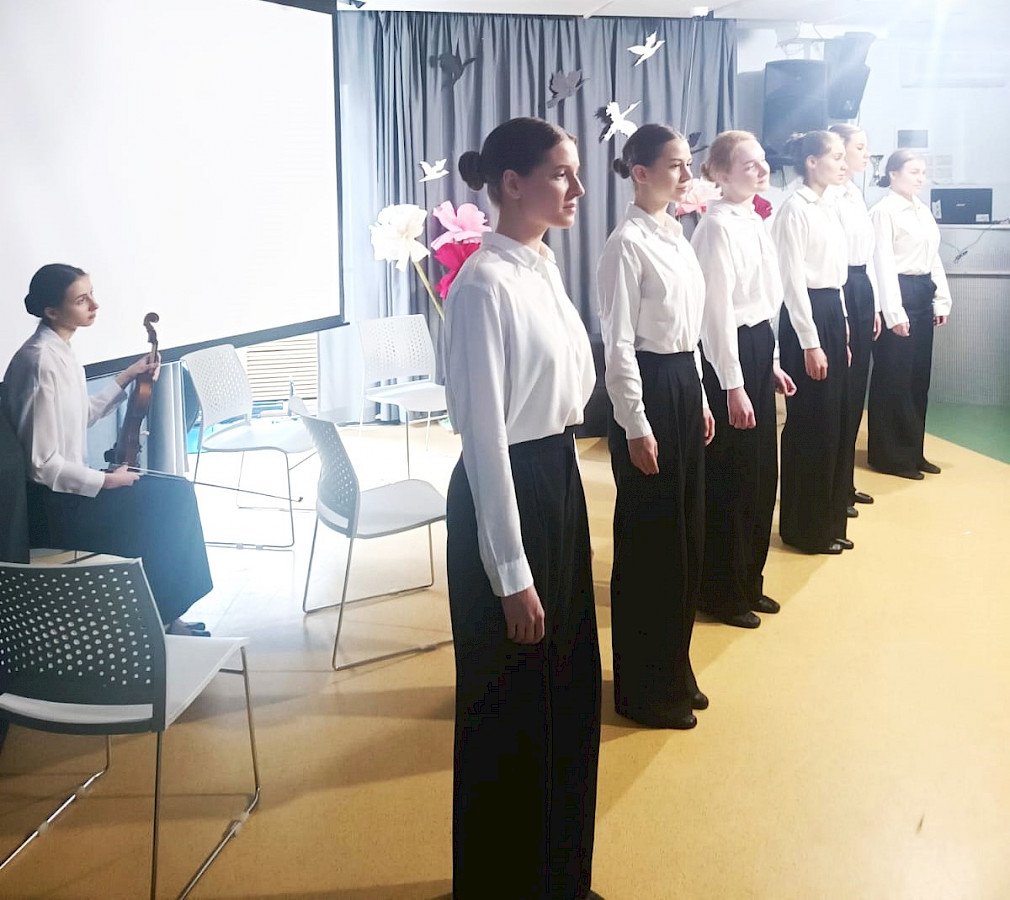7 классам был предложен к просмотру спектакль "О блокаде Ленинграда: новый взгляд", ставший настоящим открытием для ребят и педагогов. Он не только удивил глубиной исполнения и профессионализмом молодых актеров, но и заново открыл страничку истории, полную героизма и мужества - блокаду Ленинграда. Начинающие актеры показали свой взгляд на жизнь людей внутри блокады в виде воспоминаний их ровесницы - молодой девушки, пробирающейся по улицам холодного Ленинграда и по замерзшей Неве на работу к своему отцу - хирургу.
