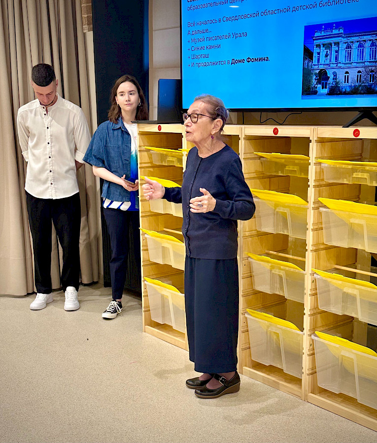 М.П. Никулина, основательница гимназии и руководитель школьного музея, рассказала об уникальной судьбе дома и всей Заячьей/ Златоустовской улицы. Новая распорядительница здания - О.М. Ловцова поделилась планами по обустройству детского дошкольного центра, особенностях программы и работы с детьми в открытом эргономичном пространстве.