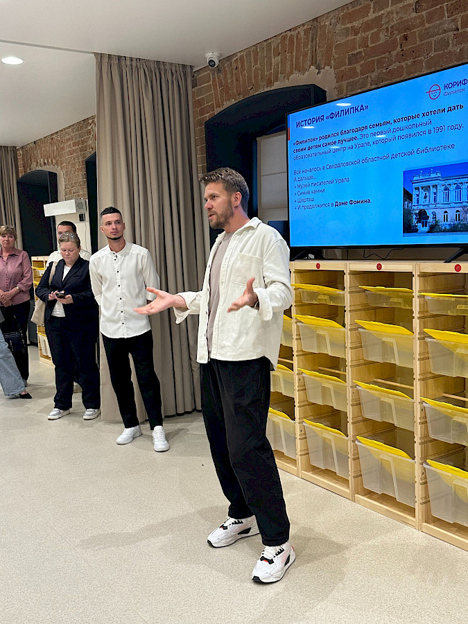 На новоселье собрались руководители всех площадок и подразделений «Корифея», партнёры, представители родительского актива, выпускники и не только. Сначала гостей поприветствовали глава сети школ «Корифей» А.А. Бабетов и Сергей Ермак, руководитель PR-службы застройщика («Брусники»): оба подчеркнули уникальность проекта (историческое здание + новейшие архитектурные и дизайнерские решения) и его возможности для реализации самой современной модели дошкольного образования.