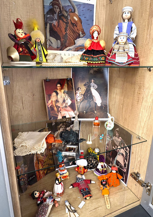 Женщина – это дети, жилище, тепло, устойчивость и надежность дома, стабильность, постоянство. Кукла – воплощение женского начала: от статуэтки богини до игрушки. Есть на выставке куколки без лиц - это ОБЕРЕГИ, Защитницы дома, порядка, достатка и мира. Две хантыйские красавицы в вышитых шубках – образы Великой Матери. Остальные тоже со своим значением и соответственно называются: Берегиня, Хозяйка, Подательница детей, Зернушка, Травянушка, Крупеничка, Благополучница, Радость в дом… Есть куколки побогаче, есть попроще, но каждую делали с любовью и верой.